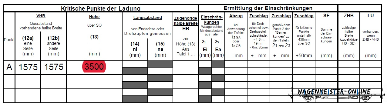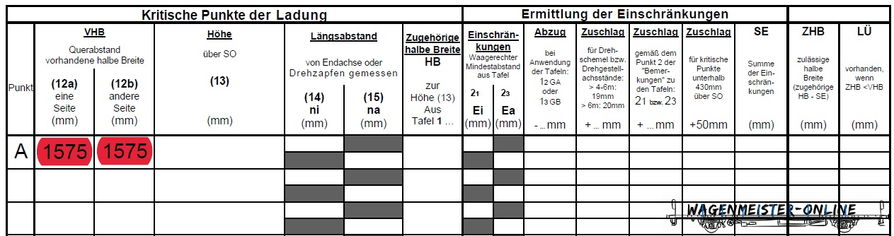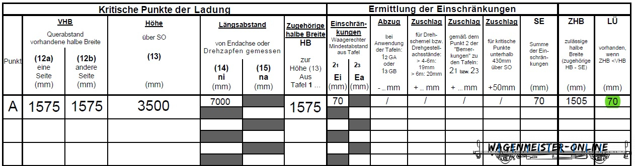Breite ist liegt ein LÜ vor. Dies ist in Spalte LÜ einzutragen.