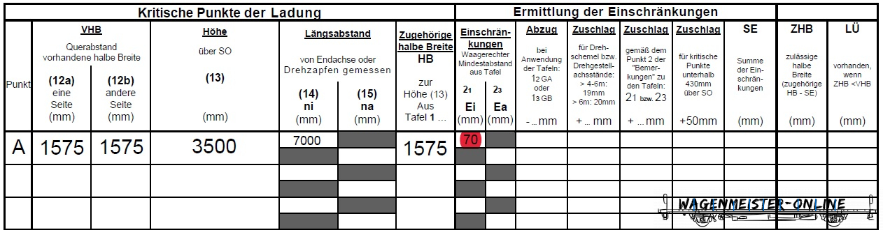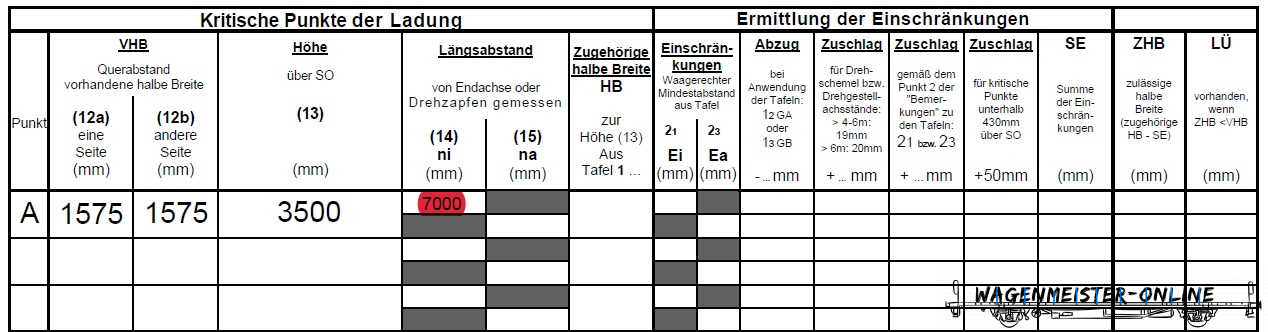 Den Längsabstand des Punktes im LÜ-Berechnungsblatt ni Spalte 14 eintragen.
