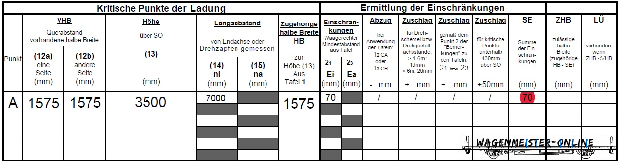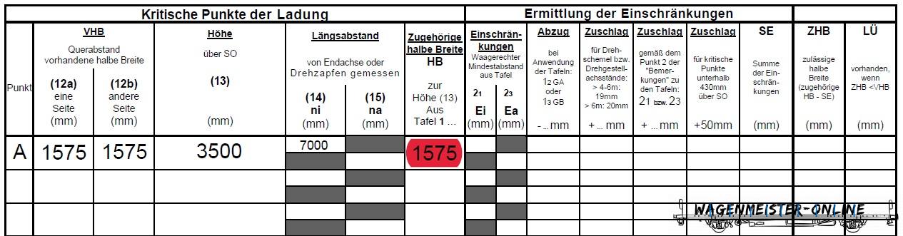 Weiter ist die zugehörige halbe Breite des Lademaßes, welches anzuwenden ist (in diesem Fall Tafel 1.4), zu ermitteln.